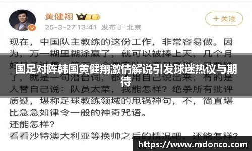 国足对阵韩国黄健翔激情解说引发球迷热议与期待